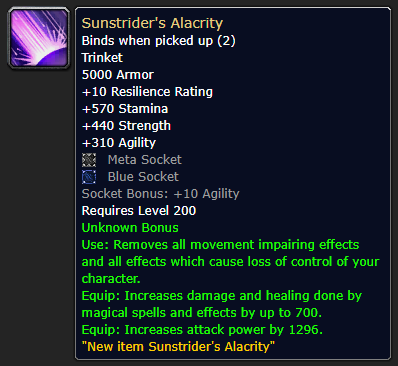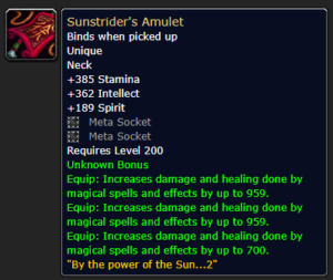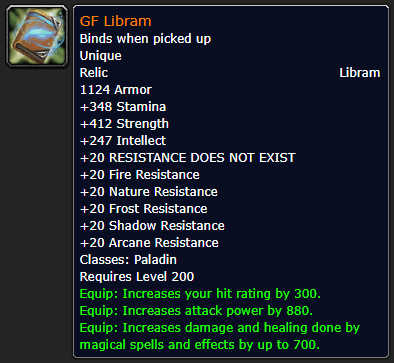 Padá z něj zajímavá sestava doplňků pro spell i melee jako např.: